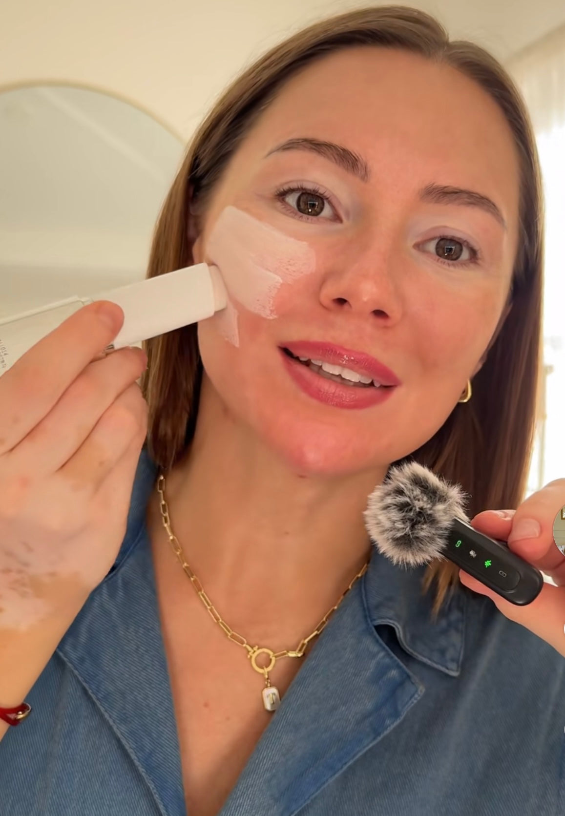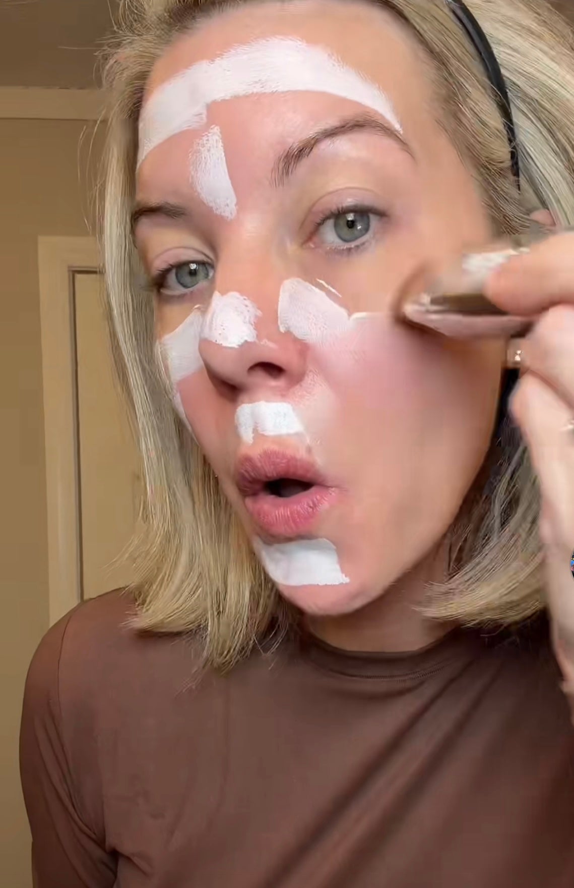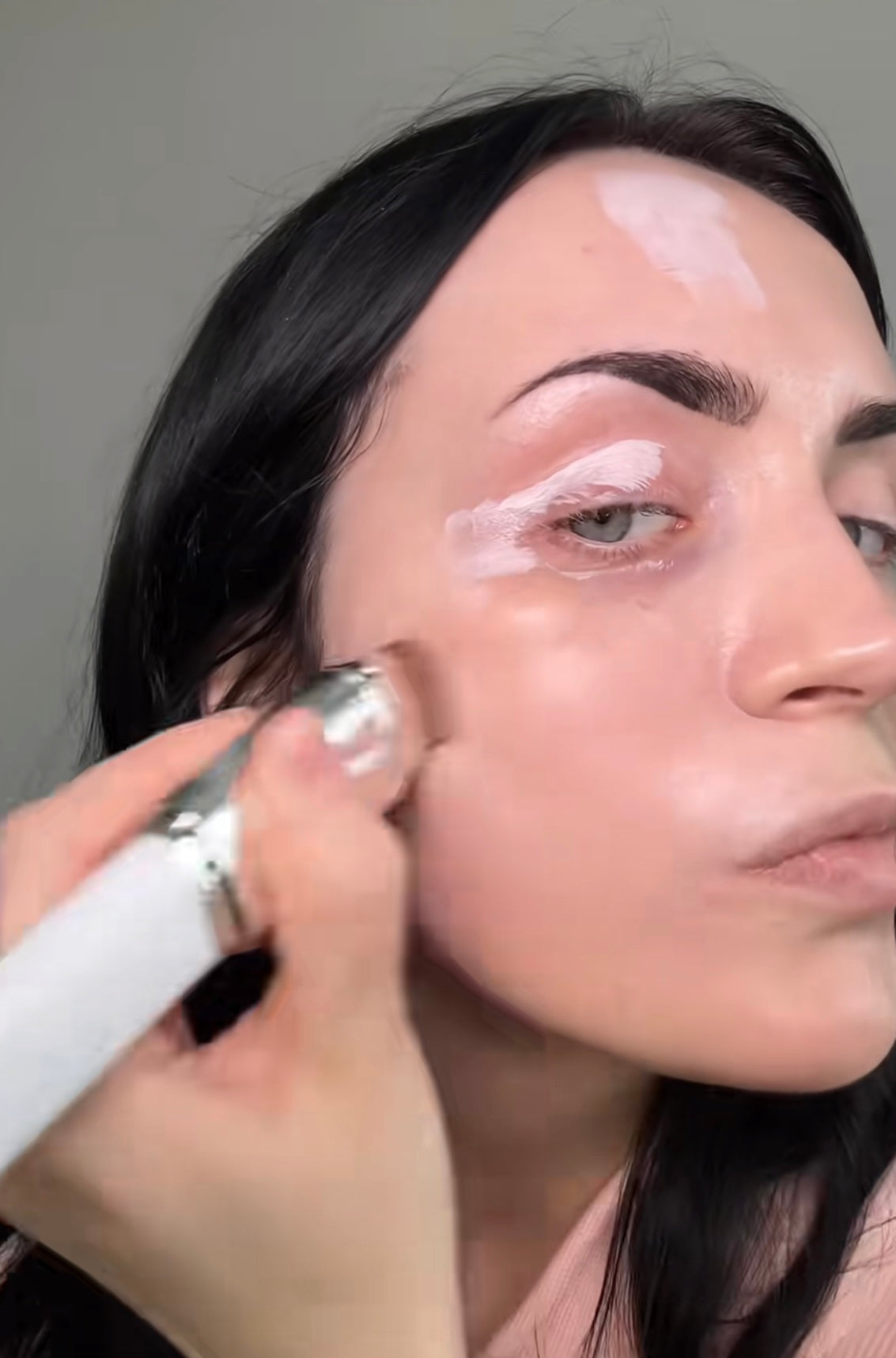 Déposez le produit en petites touches (joues, front, menton).