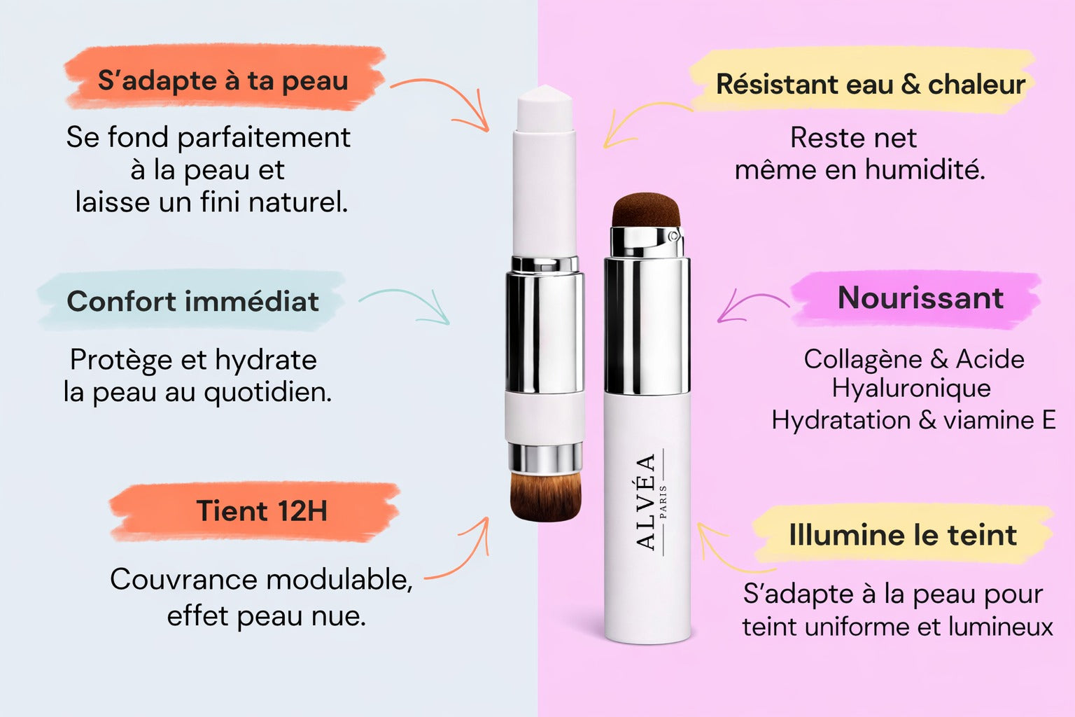 Le soin coréen privilégie l’aspect peau saine : un teint lumineux, net et naturel. Alvéa Paris suit cette approche : unifier et flouter, tout en conservant un rendu vivant et confortable.